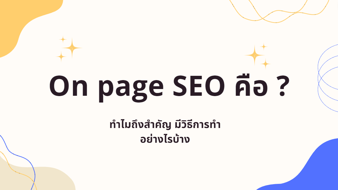 แน่นอนว่าการทำ seo นั้นเราจะต้องรู้จักการทำ On page และ Off page seo แต่หากใครยังไม่ทราบวันนี้เราจะมาขอพูดถึงการทำ On page seo คืออะไร มีส่วนประกอบอะไรบ้าง เราจะมาพูดเรื่องสำคัญๆ ที่ต้องทำมีดังนี้